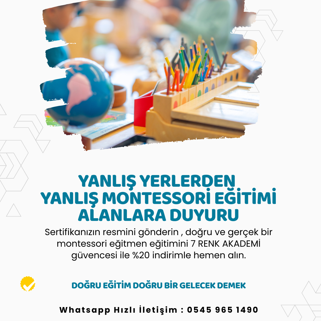 Biz; eğitmen eğitimleriyle, seminerlerle, akreditasyon süreçleriyle kaliteyi belirliyoruz. Geleceğin eğitim sistemini kurarken, Montessori felsefesini çağın ihtiyaçlarına uyarlıyoruz.Her çocuk benzersiz. Her çocuk bir potansiyel. Biz, o potansiyeli açığa çıkaran bir eğitim için varız.